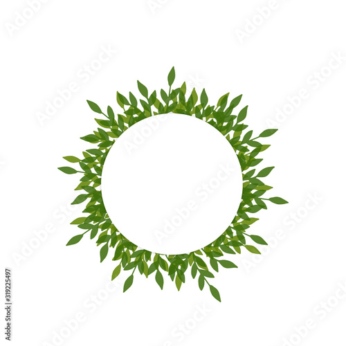 illustration circle frame with green leaves.Frame for wedding invitations, save the date or greeting cards.