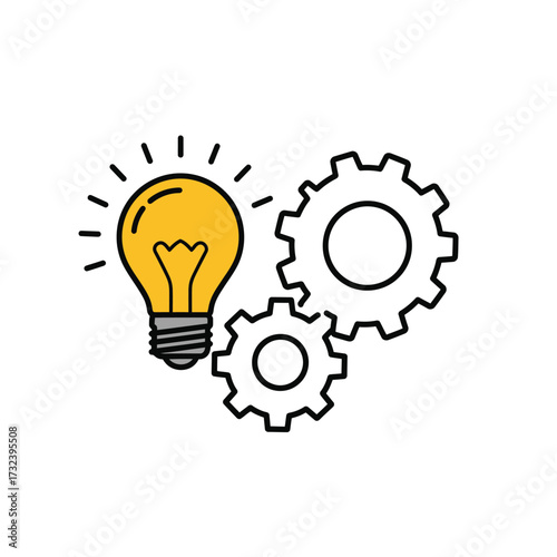 Illustration Idea Vector with Light Bulb and Gears Minimalist Design