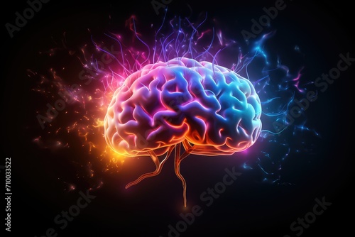 Illustration in neurology studies brain function and cognitive abilities. Colorful cognitive neuroscience neural pathways. Vivid Motley Colored brain human mind anatomy enhances cognition research.