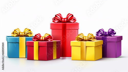 Illustration of gift boxes set, holiday presents isolated on white. Celebration holiday concept