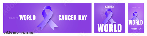 Illustration Of 4 February World Cancer Day Poster Or Banner Background. Cancer Awareness Realistic Ribbon.