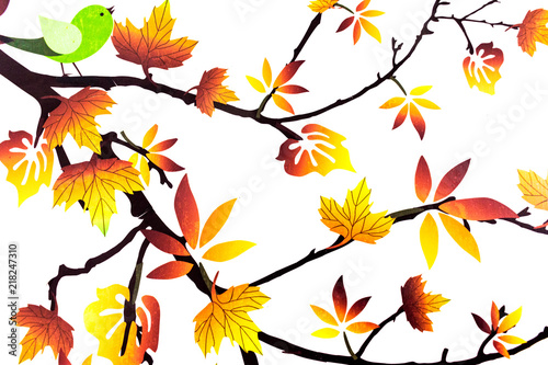 Illustration Of A Beautiful Tree With A Green Bird Sitting On It