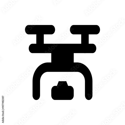 Illustration of a black drone with rounded edges and a camera centered on a white background design style