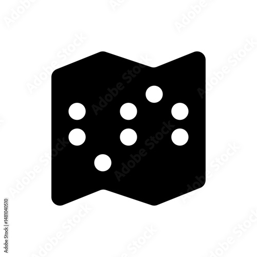 Illustration of a black irregular shape with rounded corners and seven white circles distributed on it