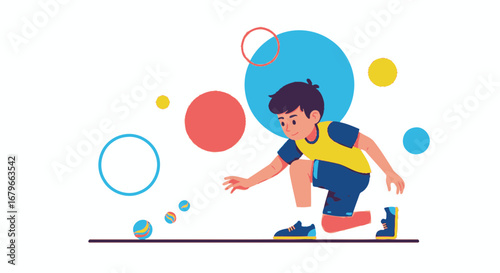 Illustration of a boy playing marbles, ideal for childhood and sport concepts