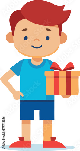 Illustration of a boy with red hair holding a gift box