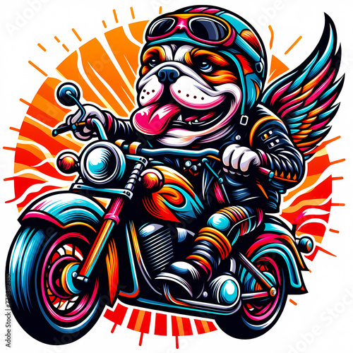 illustration of a bulldog riding a motorcycle
