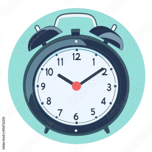 Illustration of a classic alarm clock with a turquoise background, showcasing the time at 2:00.