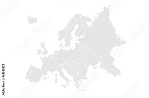 Illustration of a Colored map of Europe.Europe map on white background. Europe template with continents, North and South America, Europe and Asia, Africa and Australia.Grey blank Europe map.