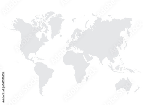 Illustration of a Colored map of world.World map on white background. World map template with continents, North and South America, Europe and Asia, Africa and Australia.Grey blank world map.
