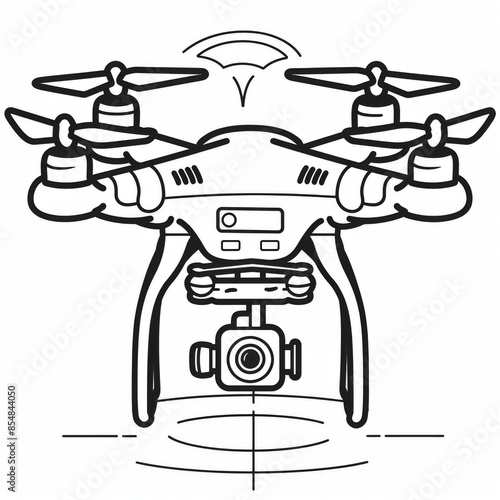 Illustration of a drone equipped with a camera, designed as a coloring page for children.