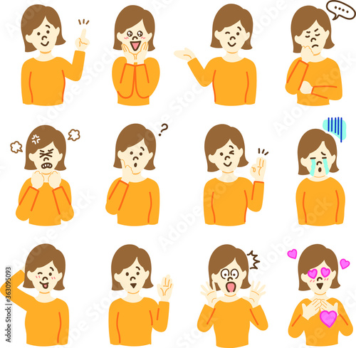 Illustration of a female pose Bust up 女性のポーズのイラスト バストアップ