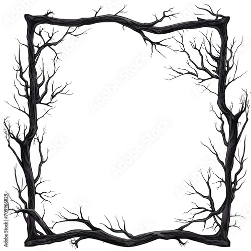 Illustration of a frame of rustling black branches, on a white background created with Generative Ai