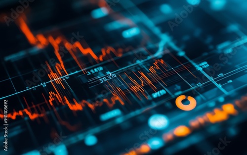 Illustration of a government budget influenced by economic policy, represented by digital charts and spending categories