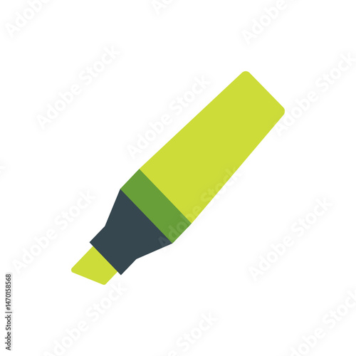 Illustration of a highlighter with a yellow tip and body and green band and a dark gray cap on a white background