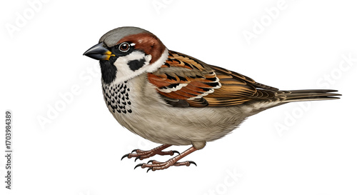 Illustration of a House Sparrow Bird isolated PNG with Transparent Background