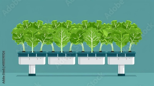 Illustration of a hydroponic system with leafy green plants, showcasing modern sustainable agriculture and advanced farming techniques.