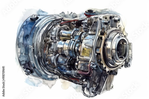 Illustration of a jet engine on a white background, suitable for educational or technical purposes