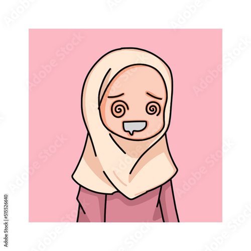 Illustration of a Muslim Kid Girl Wearing Hijab. Vector Illustration