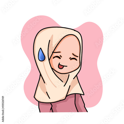 Illustration of a Muslim Kid Girl Wearing Hijab. Vector Illustration