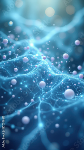 Illustration of a NAD molecule with spheres representing atoms, highlighted by glowing effects for scientific or medical representation.