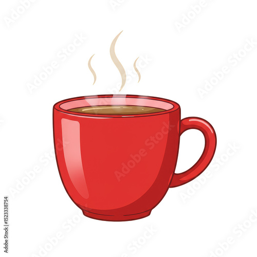 Illustration of a Red Coffee Cup with Steam on Transparent Background