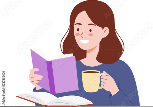illustration of a relaxed girl reading a book while drinking coffee