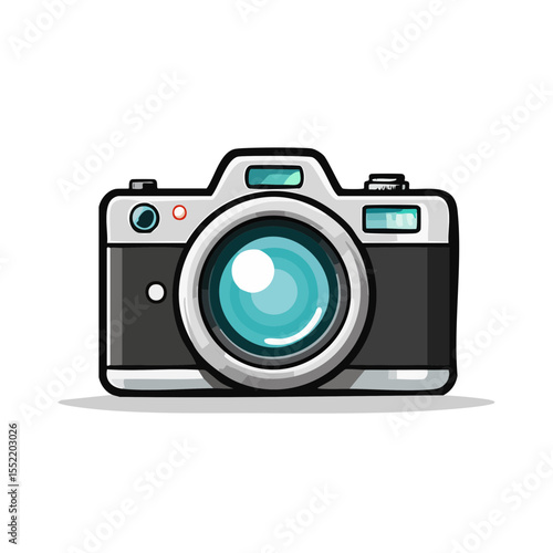 Illustration of a Retro Camera with Large Lens and Flash on a Black Background