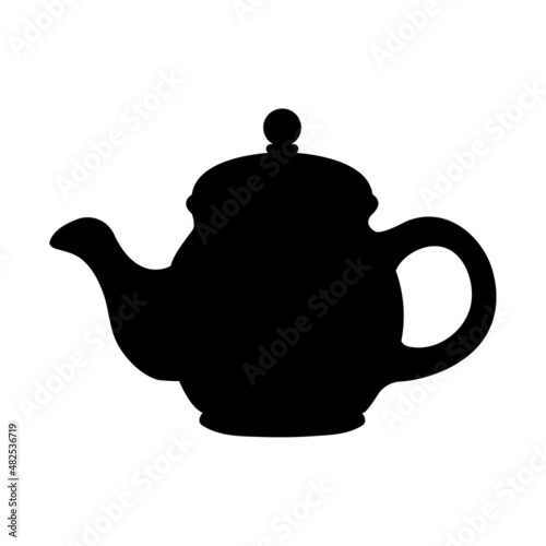 Illustration of a silhouette of a teapot in the form of a badge, icon tea pot, herbal brew, boiling water, isolated on a white background. Vector graphics