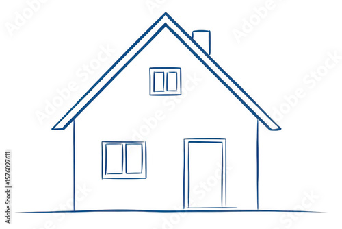 Illustration of a simple house outline with a chimney and two windows front