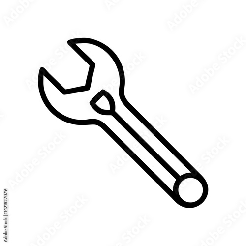 Illustration of a simple open end wrench tool with a black outline on a white background design style