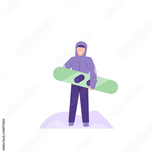 illustration of a ski athlete. person holding a snowboard. wear a jacket or winter clothes. people activity. flat cartoon style. vector design