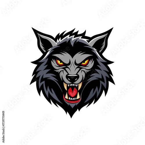 Illustration of a snarling wolf head art on transparent background silhouette