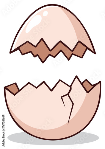 Illustration of a Split Open Empty Eggshell with Jagged Edges and Cracks