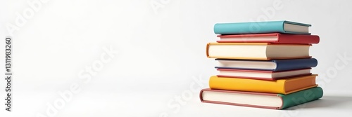 Illustration of a stack of various colorful books on a white background, library, reading
