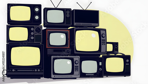 illustration of a stack of vintage television sets, silhouette, with white tones