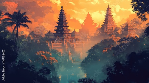 Illustration Of A Travel Poster For A Trip To Bali Island, Generative AI