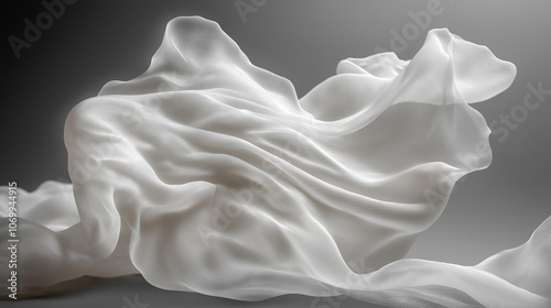 Illustration of a white elegant silk flying. Thrown bright veil.