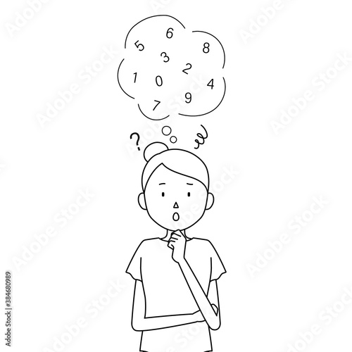 Illustration of a woman who is having trouble remembering her password(pin code, pass code)