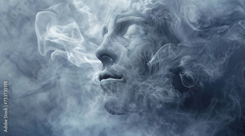 Illustration of a woman's head being enveloped in a thin moving smoke.