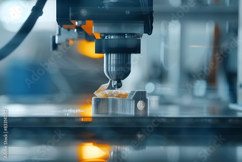 Illustration of Adoption of additive manufacturing (3D printing) and other advanced techniques to improve production processes. Ai Generate.
