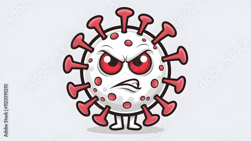 Illustration of an angry virus character showing an aggressive expression on a bright background.