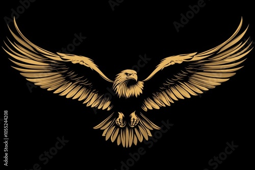 illustration of an eagle with spread wings, bold lines, soaring in the sky flying, logo, artwork