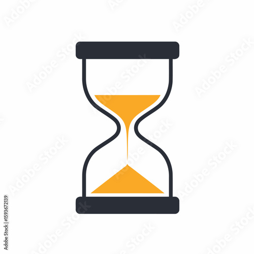 Illustration of an hourglass with yellow sand flowing, representing time passing, against a white background.