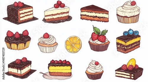 Illustration of birthday cake clipart with pieces of well dressed cakes