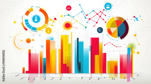 illustration of business data analysis with abstract geometric lines and shapes, business concept abstract background with colorful charts, graphs, data, marketing research and business reports.