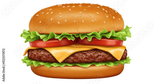 Illustration of Cheeseburger with Lettuce Tomato and Cheese on Transparent