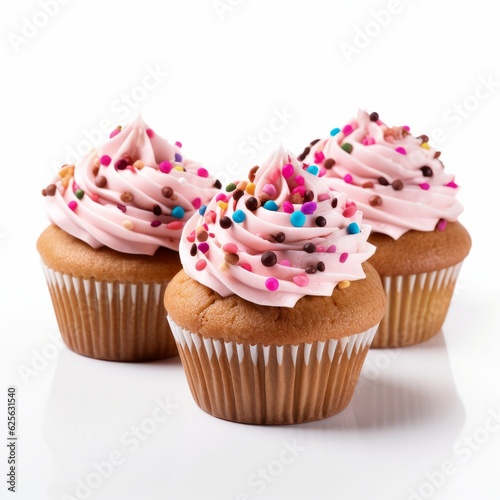Illustration of colorful cupcakes with pink frosting and sprinkles created with Generative AI technology
