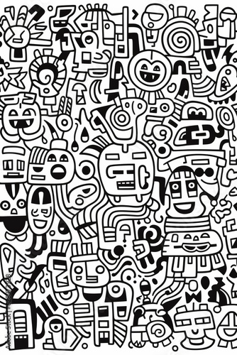 Illustration of coloring book doodle crowd cute alien monster Created with Generative AI technology.