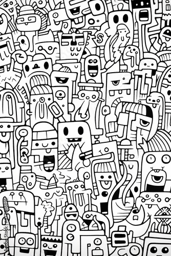Illustration of coloring book doodle crowd cute alien monster Created with Generative AI technology.